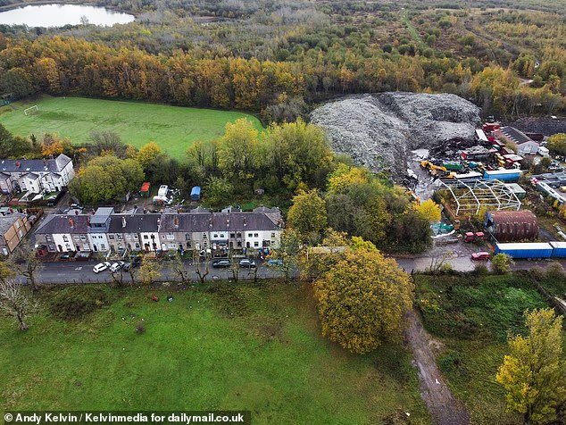 A montanha de 30 pés de 25.000 toneladas de resíduos em Wigan é feita de fraldas sujas, bem como de produtos químicos e plástico.