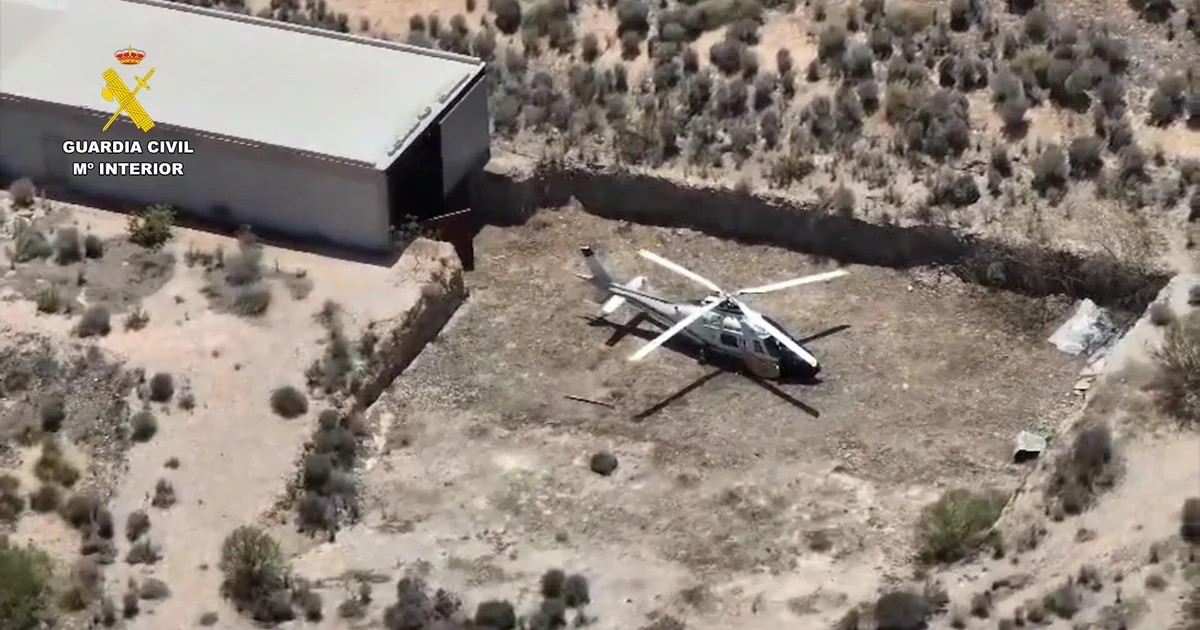 A polícia apreendeu um dos helicópteros, 1.448 libras de haxixe, cinco armas de fogo, dinheiro e veículos durante operações nas províncias de Málaga, Almeria e Múrcia.
