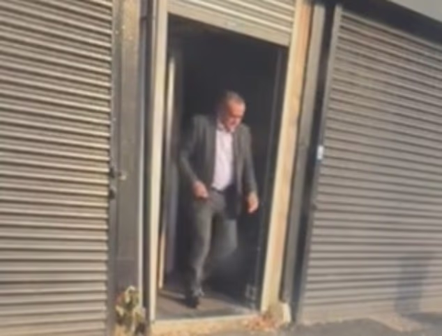 O vídeo que motivou a demissão de Kellett mostrou um homem vestido com um terno cinza e uma camisa branca saindo por uma porta entre duas lojas fechadas em Sheffield.