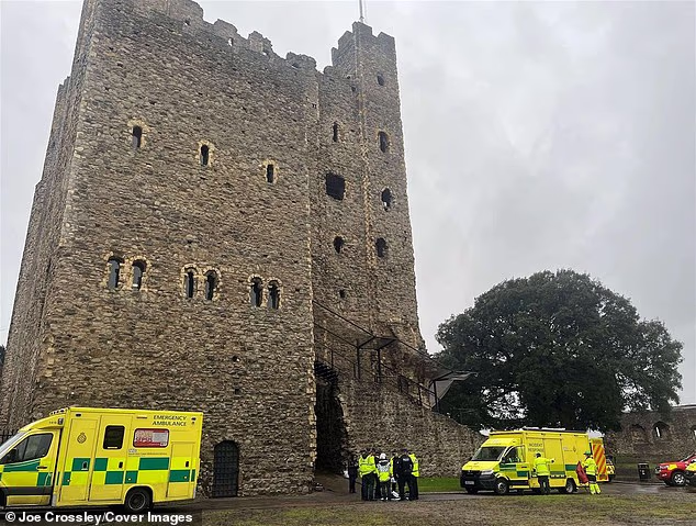 Os serviços de emergência correram para o Castelo de Rochester, em Kent, às 8h41, após ligações de que uma pessoa estava “caindo de altura”.