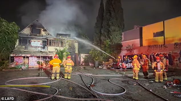 O Corpo de Bombeiros de Los Angeles respondeu ao incêndio às 4h30, após receber relatos de um incêndio em lixo na propriedade.