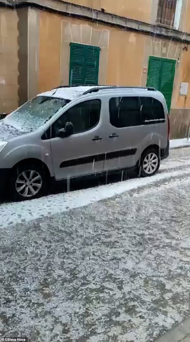 Isso acontece depois que Maiorca foi coberta por um manto branco ontem, após uma estranha tempestade de granizo que deixou os moradores locais chocados dizendo que as pedras de granizo eram do tamanho de nozes.