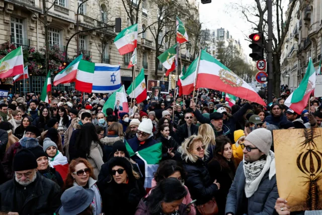 “Apoie a revolta do Irão. Agora, agora, agora.” “Apoie a revolta do Irão.” “Apoie a revolta do Irão. Agora, agora, agora.” “Apoie a revolta do Irão. Agora, agora, agora.” “O povo iraniano levantou-se mais uma vez. Os governos ocidentais precisam de expressar o seu apoio ao povo iraniano.” “Há muitas coisas a exigir, mas não estou muito optimista porque até agora a Europa parece não ter assumido uma posição clara contra o governo.”