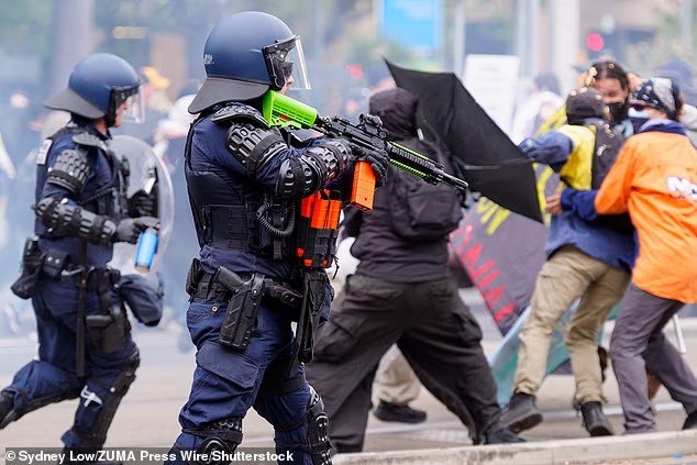 Os policiais de Victoria usaram flashbangs, spray de pimenta e balas de borracha para tentar controlar as multidões depois que um protesto contra o que os organizadores chamam de migração em massa trouxe um grande número de pessoas ao CBD de Melbourne.