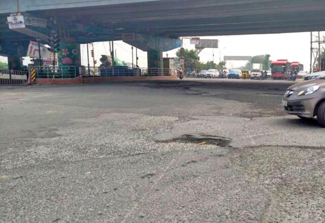 Buracos no entroncamento do Kamakshi Memorial Hospital. | Crédito da foto: T. Arvind