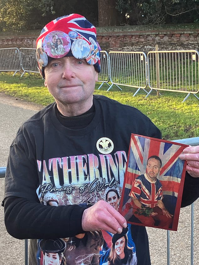 John Loughrey, de Wandsworth, sudoeste de Londres, chegou às 21h na véspera de Natal e passou a noite em uma cadeira dobrável do lado de fora dos portões e foi o primeiro na fila do lado de fora dos portões do Memorial de Guerra de Sandringham para cumprimentar a realeza no dia de Natal.