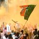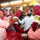 O vice-ministro-chefe de Maharashtra, Eknath Shinde, sendo enfeitado depois que o Partido Bharatiya Janata venceu as eleições da Corporação Municipal, em Thane. | Crédito da foto: ANI