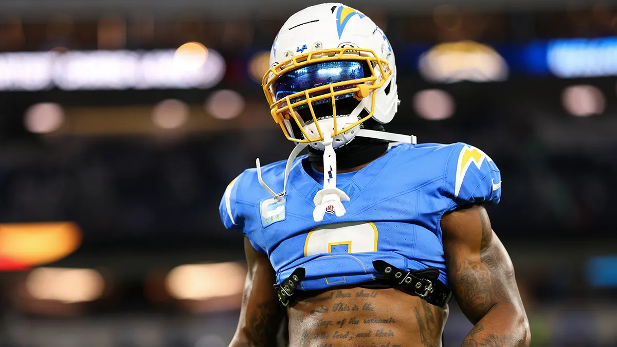 Denzel Perryman, do Los Angeles Chargers, se aquece antes do jogo contra o Philadelphia Eagles no SoFi Stadium em 8 de dezembro de 2025 em Inglewood, Califórnia. (Brooke Sutton/Imagens Getty)