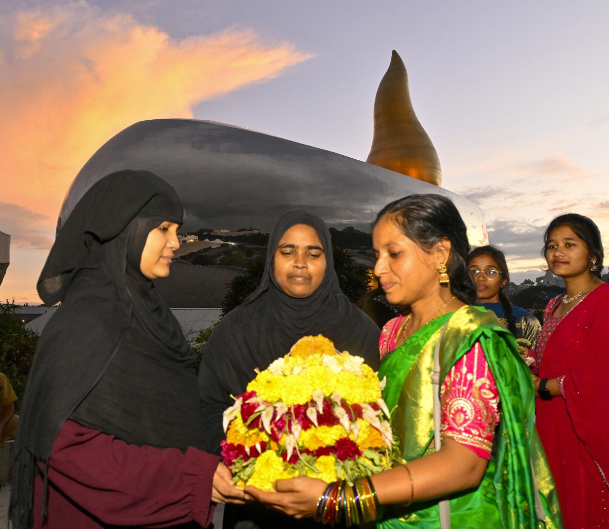 Construindo pontes: No cenário do memorial dos Mártires de Telangana, as mulheres compartilham o espírito do competition.