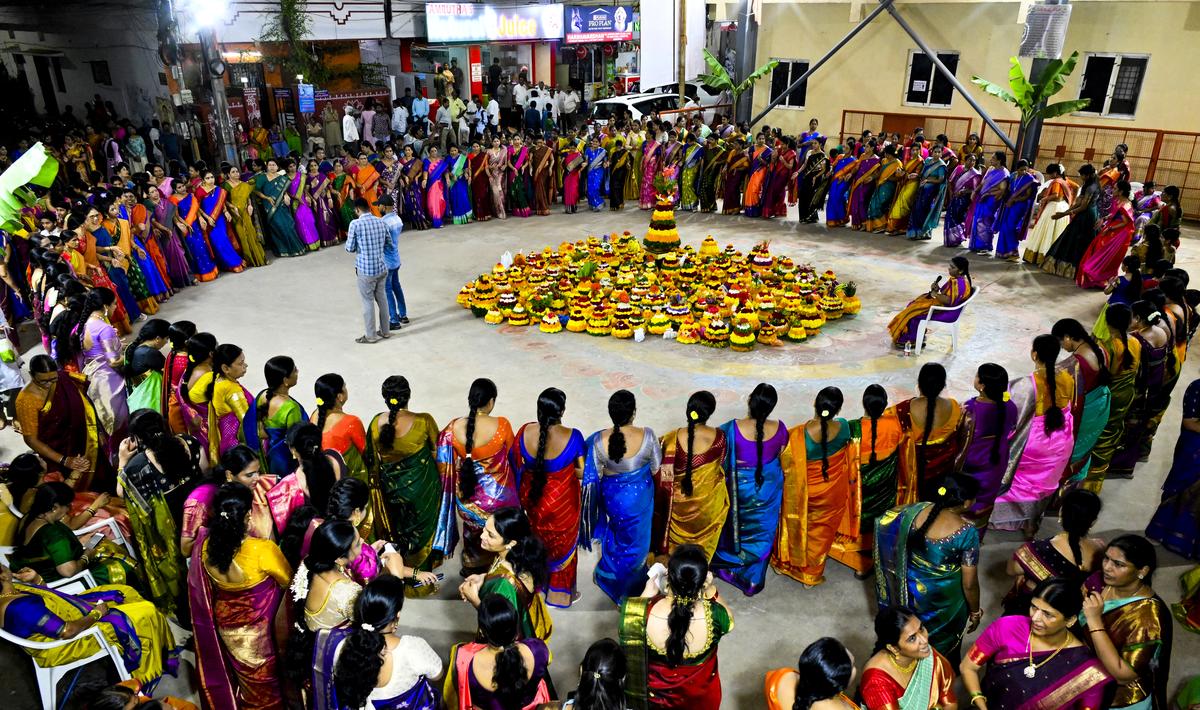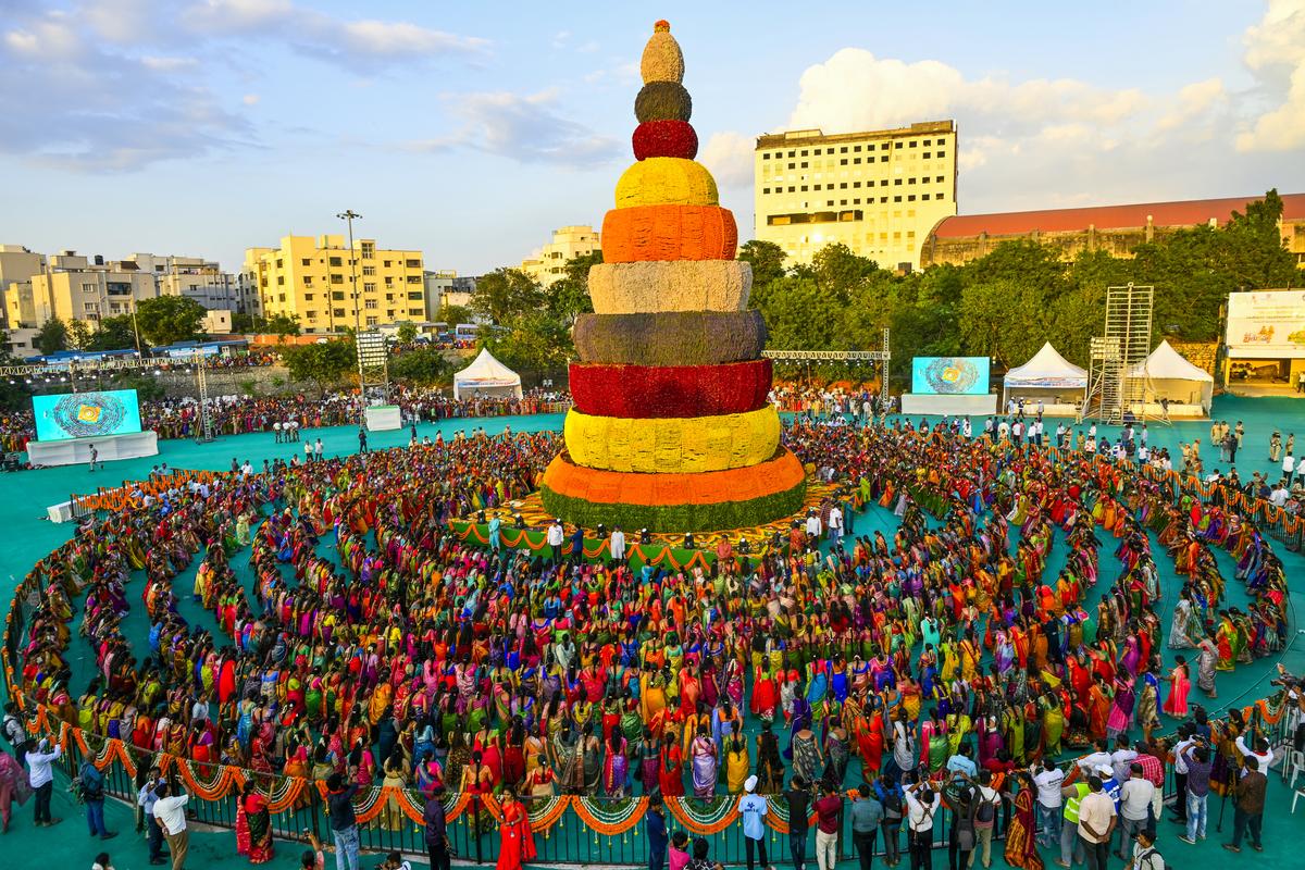 Mais do que um competition, Bathukamma é um emblema vibrante da identidade cultural e do espírito feminino de Telangana. Mulheres de todas as esferas da vida se reúnem para criar pilhas florais deslumbrantes – arranjos intrincados que simbolizam gratidão e reverência pela natureza. O ar se enche de música, palmas rítmicas e cantos tradicionais, criando um mosaico de alegria, unidade e energia espiritual. Este ano, Telangana testemunhou uma celebração recorde: um Bathukamma de 63 pés de altura, feito com 13 toneladas de flores, entrou para o Guinness World Data, tornando-se um símbolo orgulhoso da devoção e criatividade coletiva do Estado. As mulheres, transcendendo as fronteiras de casta, credo, religião ou nacionalidade, reuniram-se em grande número para assinalar a ocasião com zelo e entusiasmo incomparáveis.