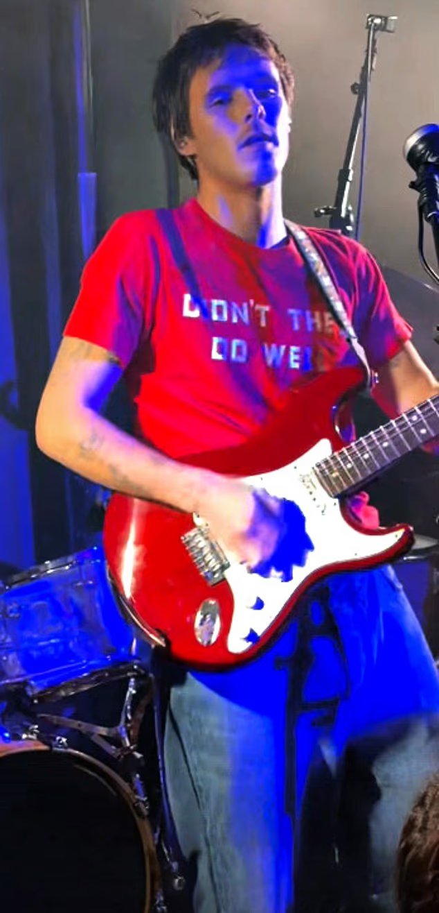 Cruz Beckham, 20 anos, tocou uma guitarra elétrica vermelha que combinava com sua camiseta diante de 100 clientes em um pub no leste de Londres.