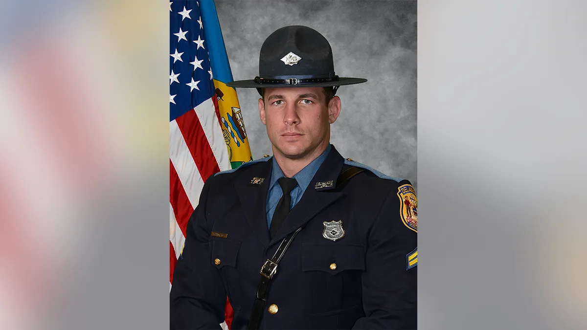 Esta foto fornecida pela Polícia do Estado de Delaware em dezembro de 2025 mostra o Cpl. Matthew Snook, um policial estadual que foi morto a tiros em um escritório do DMV perto de Wilmington, Del. (Polícia do Estado de Delaware by way of AP)