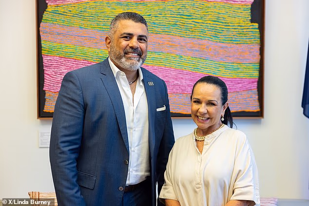 Justin Mohamed, nomeado pela Ministra das Relações Exteriores, Penny Wong, em março de 2023, recebe um salário anual de US$ 400.000 por um cargo exclusivo na Austrália (na foto, Mohamed posando com Linda Burney)