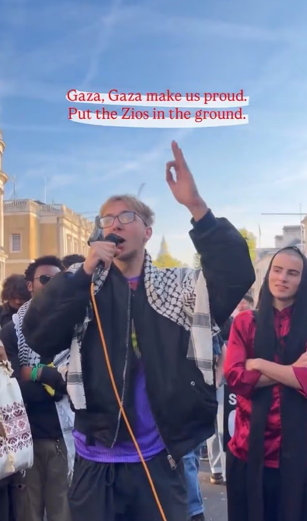 Samuel Williams, cuja casa de família fica numa área de classe média em Tunbridge Wells, liderou os cânticos ofensivos enquanto participava na Manifestação Nacional do PSC pela Palestina, em Londres, no sábado, 11 de Outubro.