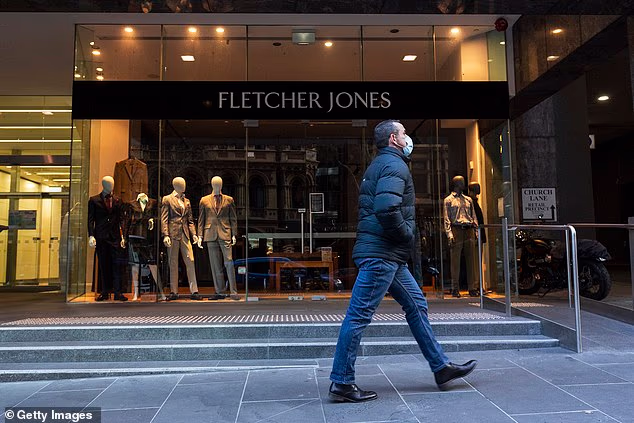 A marca com sede em Victoria, conhecida por vender roupas casuais e formais para homens, entrou em administração há 15 anos (na foto, uma liquidação encerrada em uma loja Fletcher Jones)