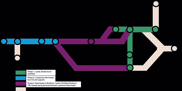 Os planos incluem novas linhas ligando Liverpool a Manchester e Bradford a Huddersfield. As atualizações também serão feitas nas linhas existentes que conectam Manchester a Leeds, Bradford, York e Sheffield.
