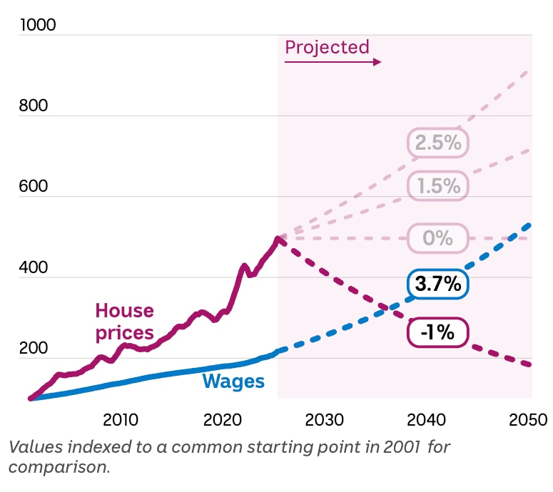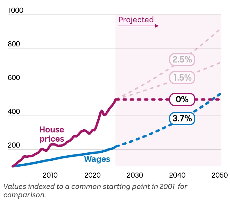 Por exemplo, se assumirmos que os preços das casas crescem apenas a 1,5 por centochegaríamos um pouco mais perto do velho regular até 2050 — um progresso ainda lento, mas uma melhoria mais tangível na acessibilidade.
