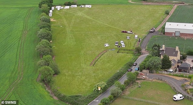 Fotografias impressionantes revelaram a rápida transformação de um pasto verdejante numa confusão cinzenta que, em poucas semanas, foi ocupada por 13 caravanas, quatro carrinhas, uma escavadora e três carros.