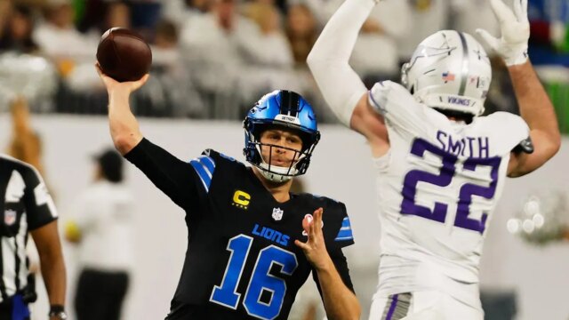 A corrida de landing de 66 jardas aumentou a vantagem dos Vikings para 10 pontos. Na próxima investida dos Leões, Jared Goff cometeu a sexta virada do time na noite. Os Leões tiveram quatro fumbles e duas interceptações. Goff foi responsável por cinco deles. Jahmyr Gibbs também teve problemas.