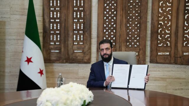 O presidente sírio, Ahmed al-Sharaa, anunciou um acordo com o chefe das Forças Democráticas Sírias lideradas pelos curdos que inclui um cessar-fogo depois que as forças do governo avançaram nas áreas controladas pelos curdos no norte e no leste. Foto/Rami al Sayed, AFP