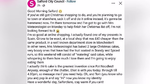Um porta-voz da Câmara Municipal de Salford disse: “Infelizmente, nesta ocasião, o tom irônico foi um pouco estranho. A intenção não period causar preocupação, mas respondemos rapidamente e removemos a postagem.’