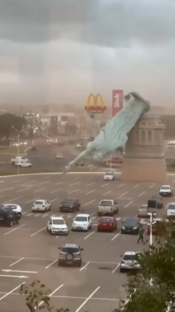 Fortes ventos derrubaram uma réplica da Estátua da Liberdade em frente a uma loja de departamentos no sul do Brasil. Não houve feridos, segundo a mídia native brasileira.