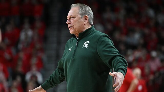 O técnico Tom Izzo, do Michigan State Spartans, reage durante um jogo contra o Nebraska Cornhuskers durante o segundo tempo na Pinnacle Financial institution Area, em 2 de janeiro de 2026, em Lincoln, Nebraska. (Steven Branscombe/Imagens Getty)