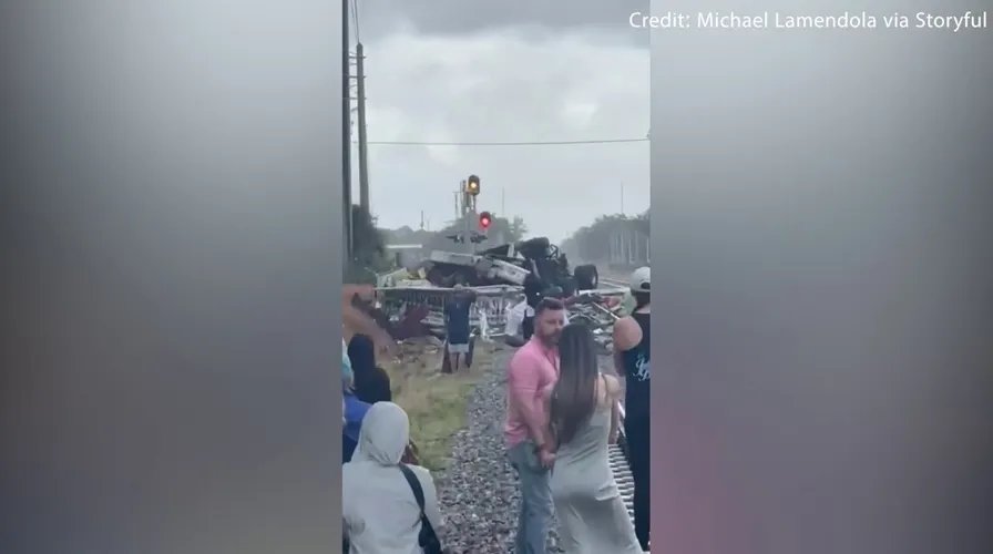 Três bombeiros e pelo menos 12 passageiros ficaram feridos no acidente em Delray Seashore no sábado, disseram autoridades. (Crédito: Michael Lamendola by way of Storyful / Arielle Schwartz by way of Storyful)