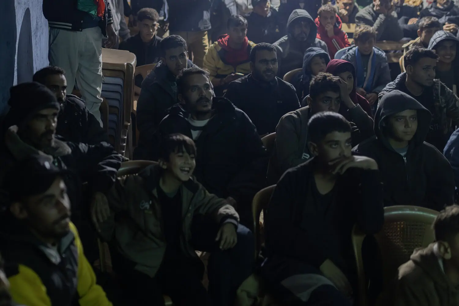 Os palestinos em Gaza enfrentaram o mau tempo para se reunirem na noite de quinta-feira para assistir a sua seleção nacional de futebol jogar contra a Arábia Saudita nas oitavas de remaining da Copa Árabe.