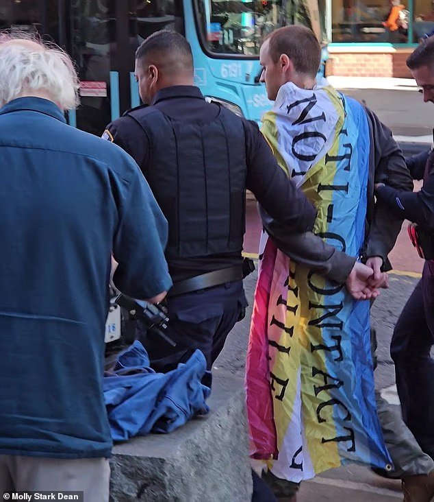 Connor Weston, 27 anos, de Dayton, Ohio, foi preso após supostamente trazer uma arma para a conferência da Wikipedia em Nova York na sexta-feira. Ele foi visto usando uma bandeira de ‘pedófilo anti-contato e não ofensor’ pendurada no pescoço