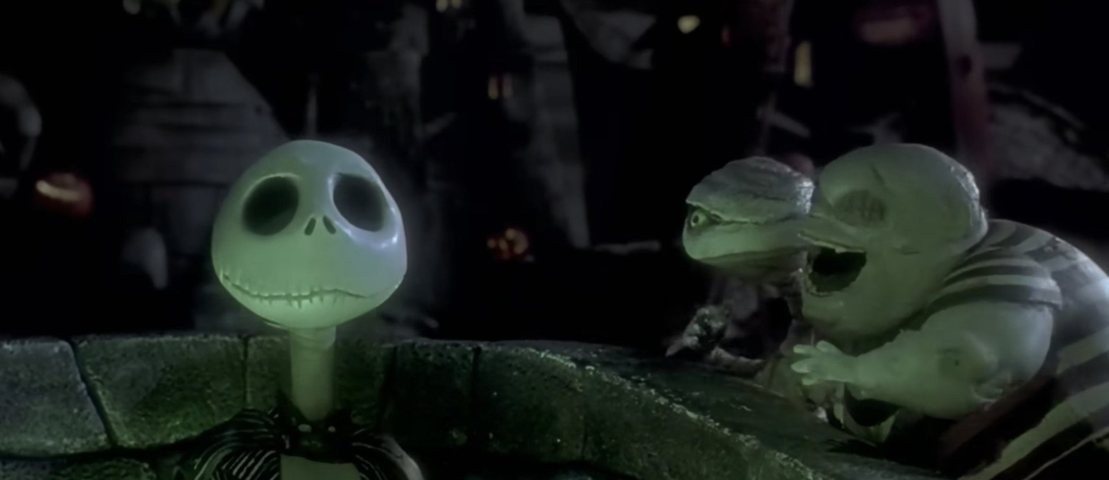 A introdução do filme é, sim, um hino emocionante do compositor do filme, Danny Elfman, sobre o Halloween e a cidade que o faz acontecer todos os anos. Somos apresentados a Jack como o principal assustador e patrono do feriado, já que o povo de Halloweentown basicamente dá uma festa depois. O Halloween pode ter acabado este ano, mas é o que alimenta toda a população deste lugar. (Veredicto: um ponto a favor de Pesadelo sendo um filme de Halloween.)
