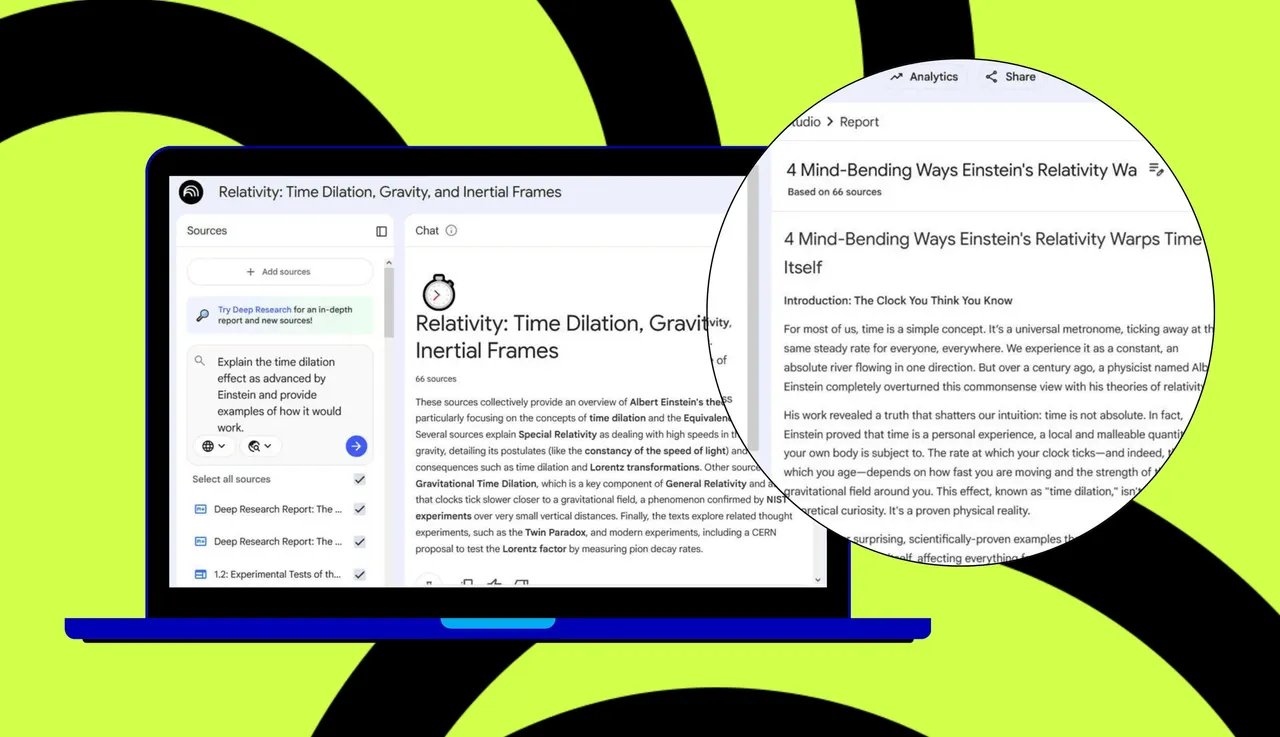 - Isso permite que o NotebookLM compile relatórios detalhados sobre o seu tópico.