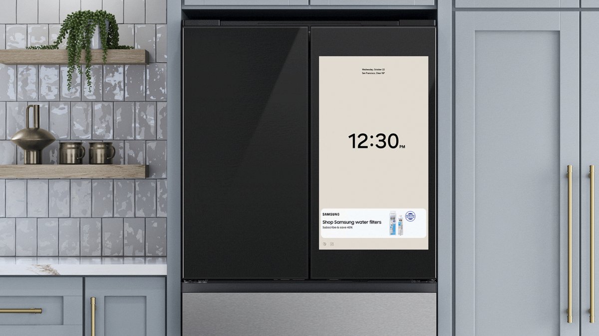 As geladeiras têm uma tela grande que normalmente mostra coisas como hora, clima, imagens de câmeras e fotos de família. Eles estão sendo atualizados com um novo design, IA mais inteligente e um novo widget para a tela de capa que mostrará notícias, previsões do tempo e – alarde – “anúncios selecionados”.