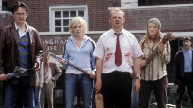As estrelas de Shaun of the Dead não eram nomes reconhecíveis nos EUA, com exceção de Lucy Davis, que acabara de passar para a consciência americana quando a versão original de Ricky Gervais de The Office se tornou popular. No entanto, a menos que você tenha pirateado de alguma forma a grande sitcom britânica Spaced, o que a maioria de nós não fez, Pegg e Frost eram recém-chegados. No filme, Pegg estrela como Shaun, um vendedor de TV de Londres que acaba de ser abandonado por sua namorada Liz (Kate Ashfield). Ele mora com seu colega de quarto mais preguiçoso, Ed (Frost) e outro colega de quarto (Peter Serafinowicz), que é um idiota e entende totalmente o que está por vir quando um apocalipse zumbi acontece.